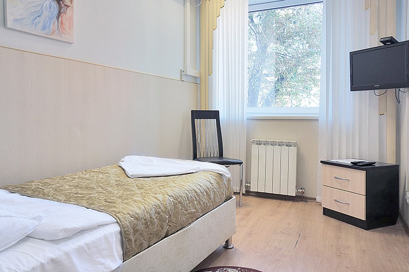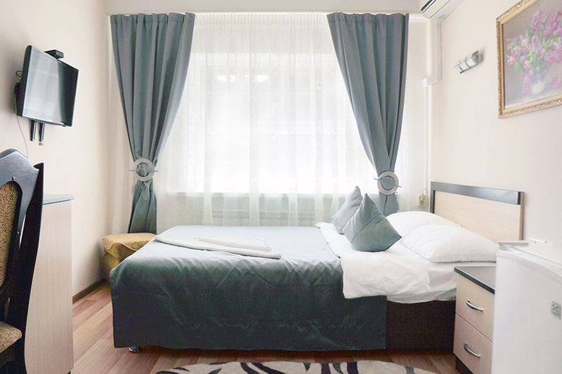 Комфортный номер с полутораспальной кроватью и санузлом в номере (душевая кабина). Кондиционер, LCD телевизор, Wi-Fi и пр.